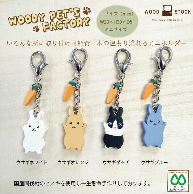 ウッディペットファクトリー ウッドストック うさぎキーホルダー 木製キーホルダー