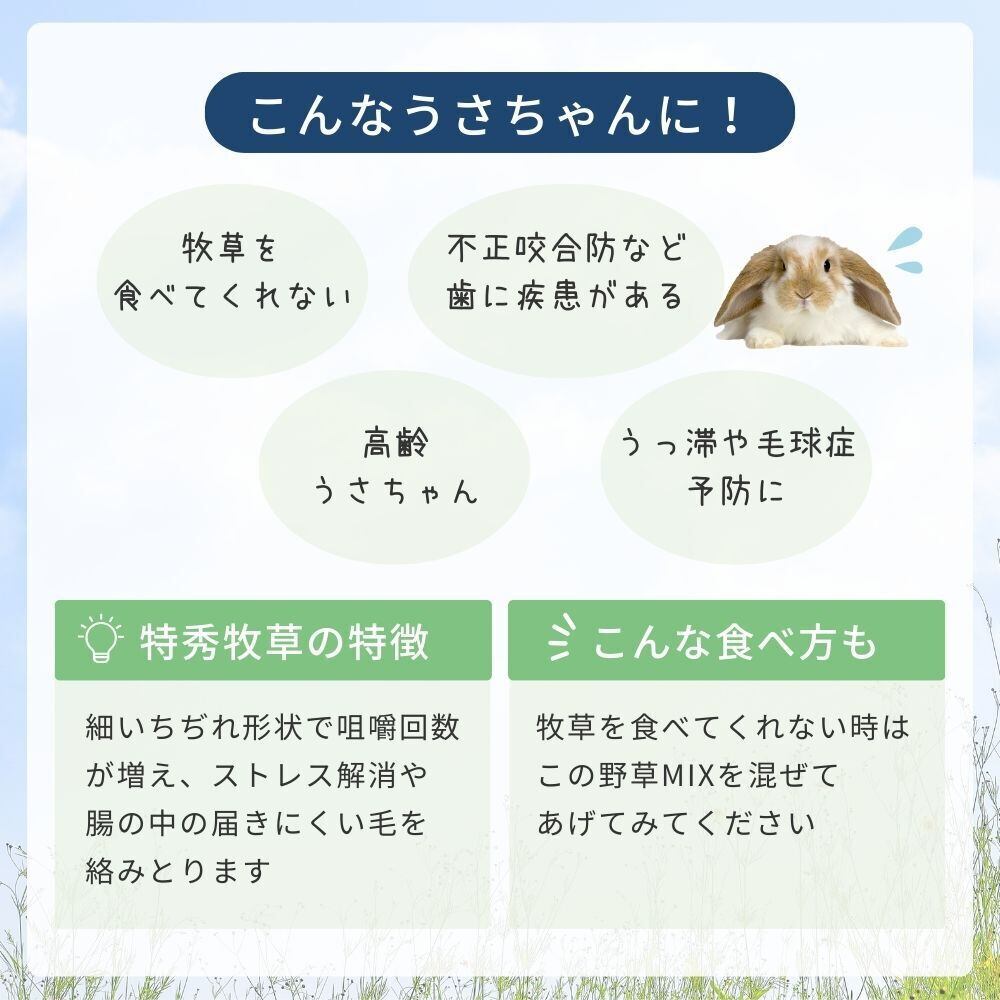 ・高齢うさぎさん、歯の調子の悪いうさちゃん、牧草をあまり食べないうさちゃんなどにオススメ
